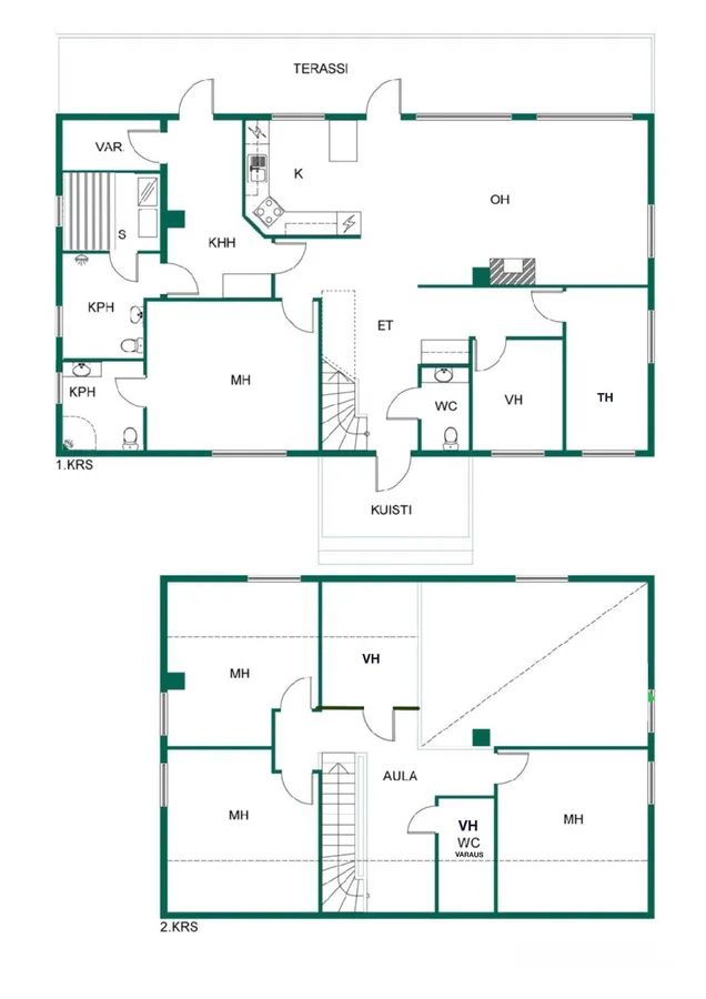 6 h, keittiö, 2vh, 2kph, 3wc, sauna, var, khh.